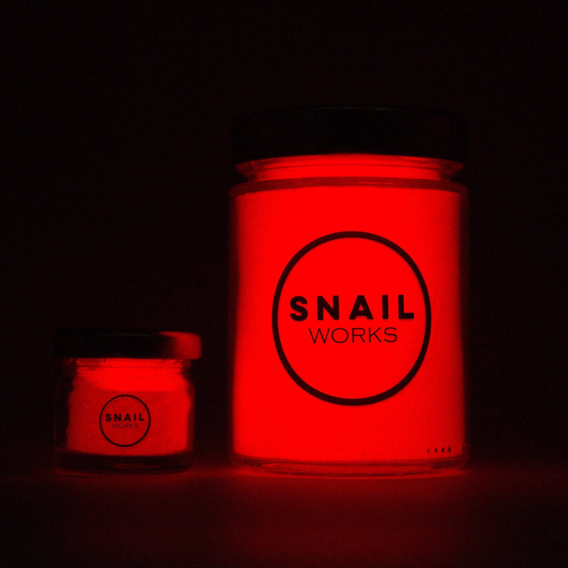 While all of our other glow powders are made from Strontium Aluminate, this is not. It is impossible to get a deep red glow like this from Strontium Aluminate powders. The only way is to use this substance - Calcium Sulfide.